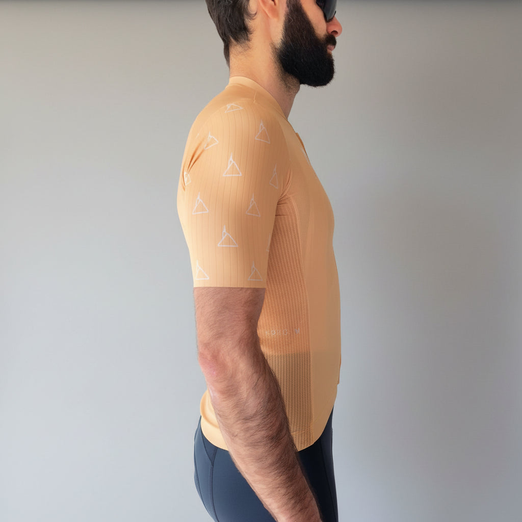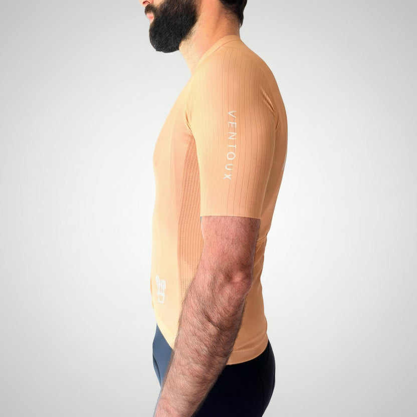 Couleur jaune or, avec en motif le Ventoux blanc sur une manche, ce jersey à manches courtes a une coupe aéro.